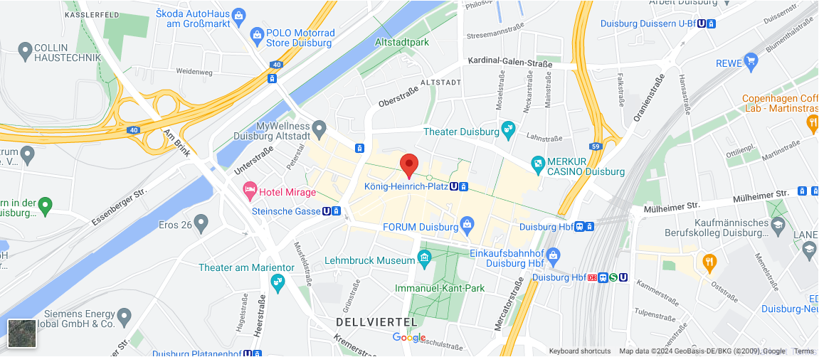 Meine Praxis ist zentral gelegen auf der Königstraße gegenüber der Nationalbank, sowieneben der U-Bahn Haltestelle König-Heinrich-Platz und ist fußläufig in ca. 5 Minuten zu erreichen.